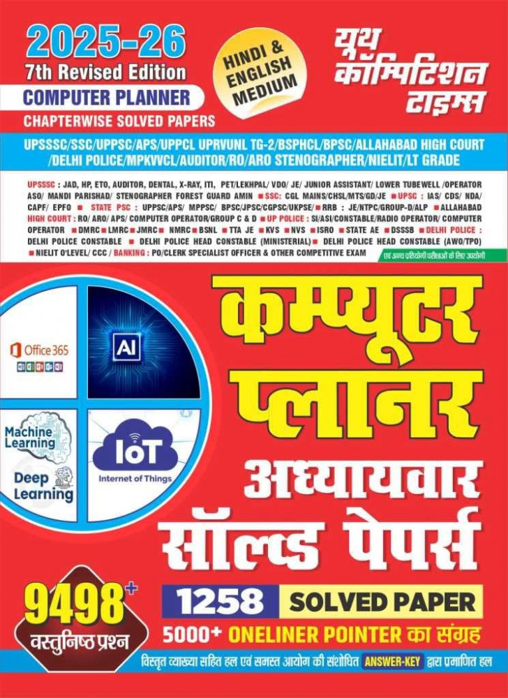 Youth Competition Times Computer Planner 7th Revised Edition 2025-26 Bilingual (Hindi and English) 9498+ Objective Questions, 1258 Solved Papers and 5000+ One-liner Pointers