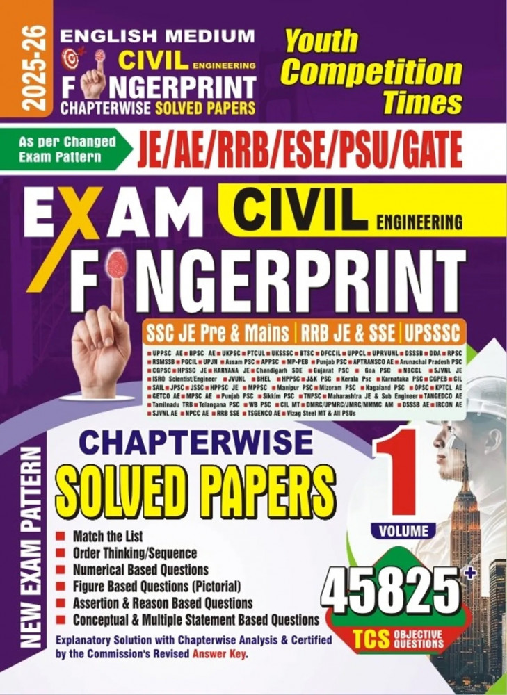 Youth Competition Times Civil Engineering Exam Fingerprint Chapterwise Solved Papers English Medium 2025-26 (45825+ Questions) Volume 1 Useful For JE/AE/RRB/ESE/PSU/GATE