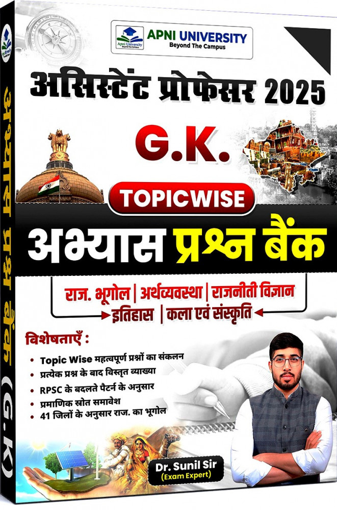 Apni University Assistant Professor 2025 GK Topicwise Practice Question Bank By Dr Sunil Sir For Rajasthan Geography | Economy | Political Science | History | Art & Culture